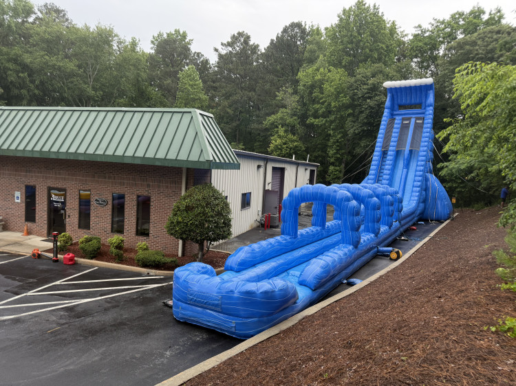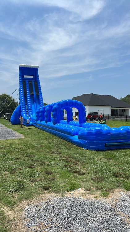 Get ready for a thrilling adventure with our 40ft Mammoth Water Slide with Slip-N-Slide! With this being our tallest inflatable slide in inventory(and in town), this amazing attraction features a steep forty-foot drop that will have you screaming in sheer exhilaration as you rush down our slippery Slip-N-Slide, and into the pool for that big SPLASH. This impressive inflatable is perfect for those memorable events where you desire to make a huge impression on your friends and family and create lasting memories! In addition, our professional team will effortlessly set up and remove the inflatable for you, making sure your party organizing endeavor is stress-free. Don't miss the opportunity to experience the excitement – reserve our 40ft Mammoth Water Slide for your next event today!